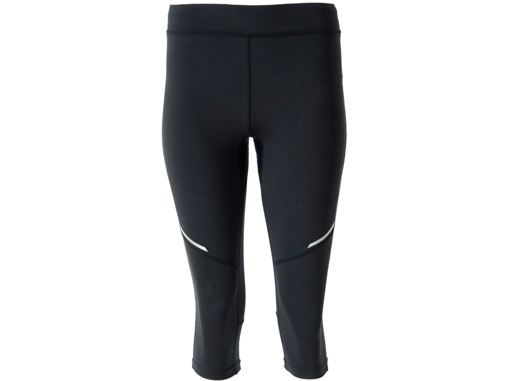 Женские спортивные легинсы длиной три четверти. Эластичный пояс с внутренним шнурком для регулировки. Светоотражающие детали. Карман сзади на молнии.