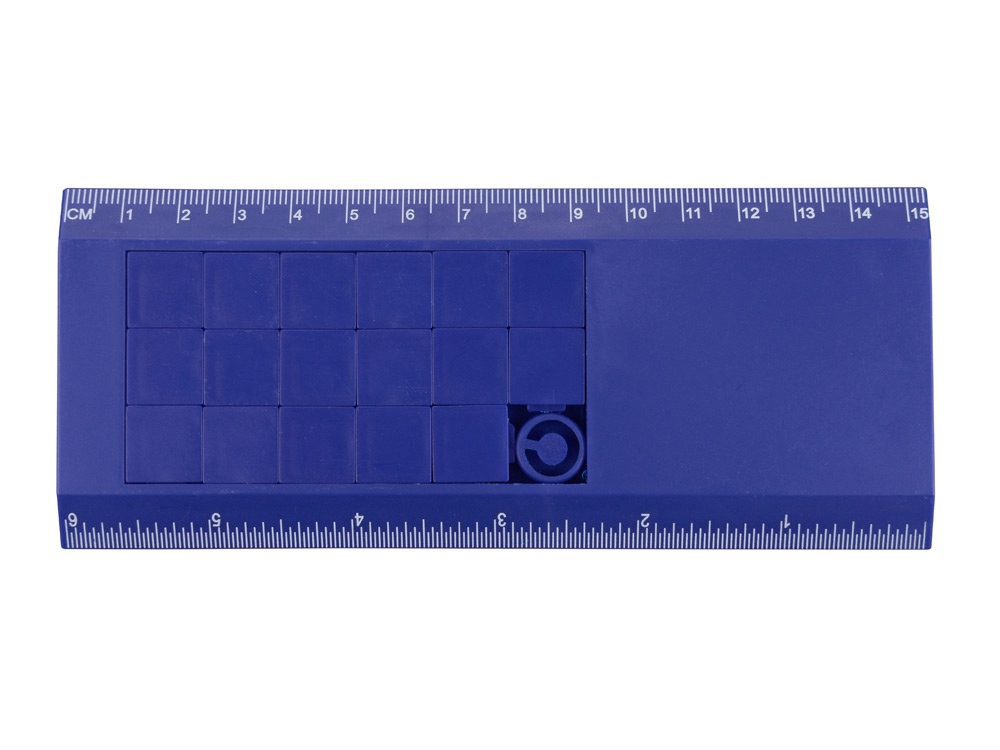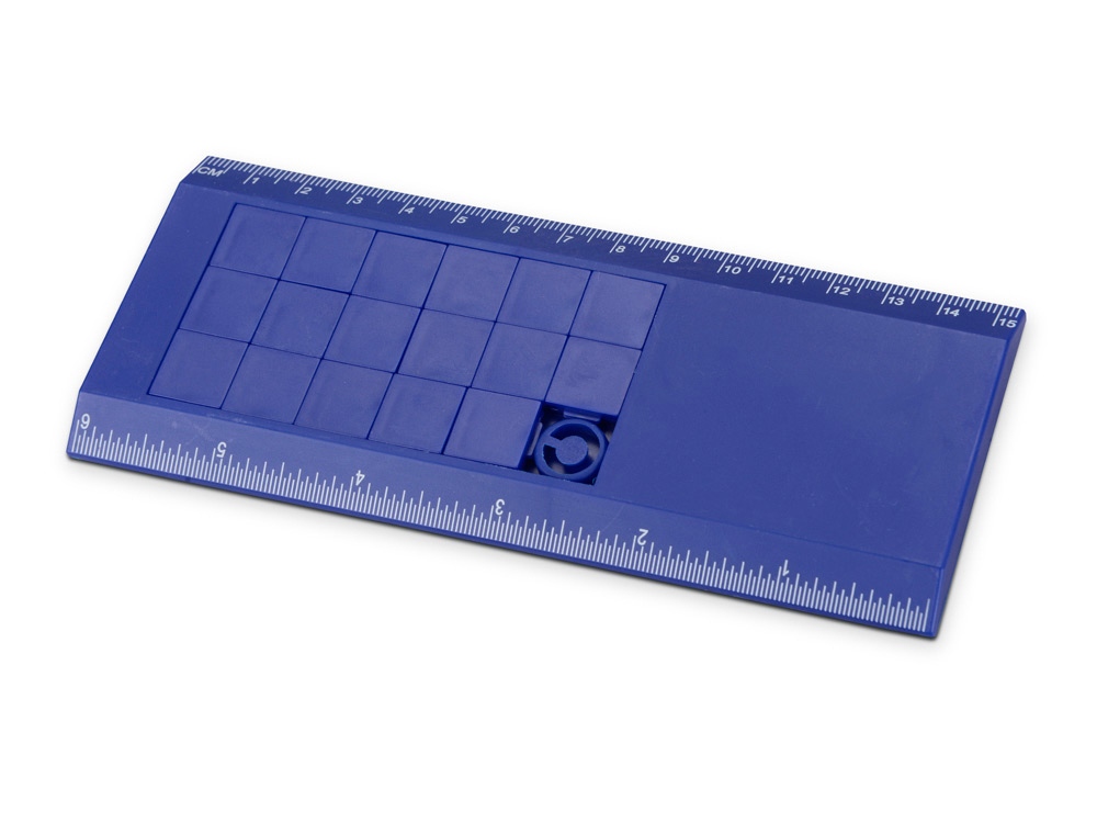 Кто сказал, что логику и мелкую моторику можно развивать только детям? Пару-тройку минут свободного времени в офисе можно посвятить знакомой всем с детства забаве – игре в пятнашки. Игра расположена на линейке, так что это еще и нужная канцелярская принадлежность. Цвета в ассортименте.
