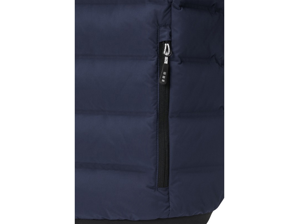 Мужской утепленный пуховик. Стежка с утеплителем. Утеплитель из переработанного пуха, сертифицированного согласно GRS и RDS. Внутренний штормовой клапан с защитой подбородка. Эластичные манжеты и нижний край из гладкого трикотажа. Передние карманы с застежкой-молнией. Бегунки застежки-молнии с простой фиксацией. Фирменная резиновая петля для вешалки. Главный лейбл нанесен методом термоприклеивания, удобным для размещения рисунков на ткани.