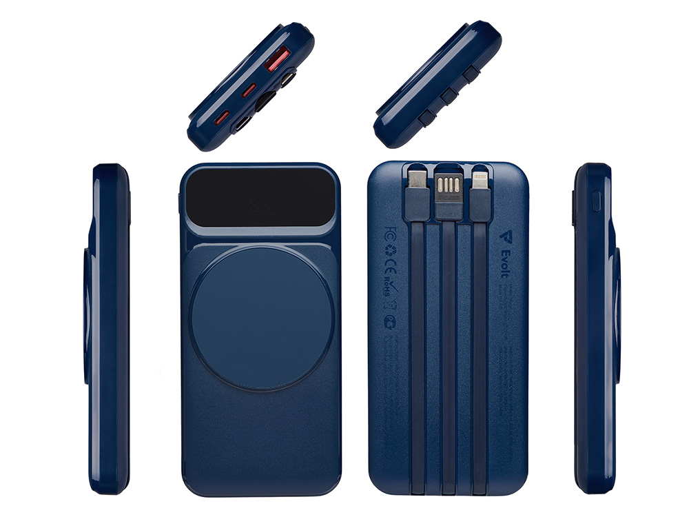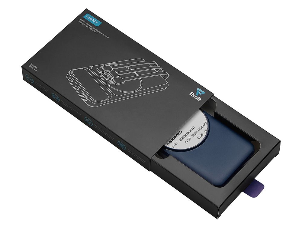 Функциональный и удобный внешний аккумулятор на 10 000 мАч обеспечивает быструю зарядку как по кабелям, так и беспроводным способом, поддерживая современные стандарты скорости. Цифровой дисплей на верхней панели мгновенно показывает точный уровень заряда, а встроенные кабели Lightning, USB-C и входной USB-A устраняют необходимость в дополнительных проводах — всё, что нужно для каждодневного использования, уже есть в самом гаджете. Компактные габариты, сопоставимые с размером смартфона, делают устройство идеальным для путешествий и повседневного использования. Сильные магниты гарантируют надёжное крепление при беспроводной зарядке. В комплекте есть силиконовая накладка: перед использованием удалите защитный стикер и прикрепите её к корпусу. - Встроенные кабели (Lightning, USB-C, USB-A) — не нужно искать дополнительные кабели: зарядка других устройств и подзарядка аккумулятора происходят через встроенные кабели. - Сильные магниты - Цифровой дисплей уровня заряда и статуса зарядки - Функции быстрой проводной и беспроводной зарядки - Упаковка с удобным и быстрым открытием