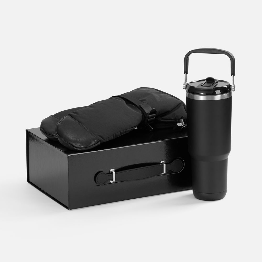 Материал варежки - полиэстер 100%, утеплитель - 3M Thinsulate, плотность 100 г/м²; вставки - натуральная кожа; внешняя стенка термостакана - нержавеющая сталь, 201, внутренняя стенка - 304; крышка - пластик; коробка - переплетный картон; искусственная кожа