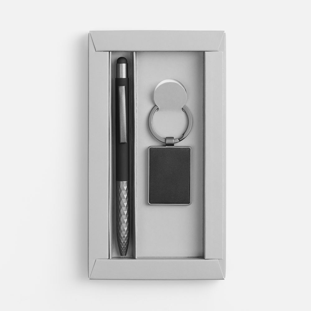 Материал брелок - металл, полиуретан; ручка - металл; покрытие софт-тач; коробка - картон