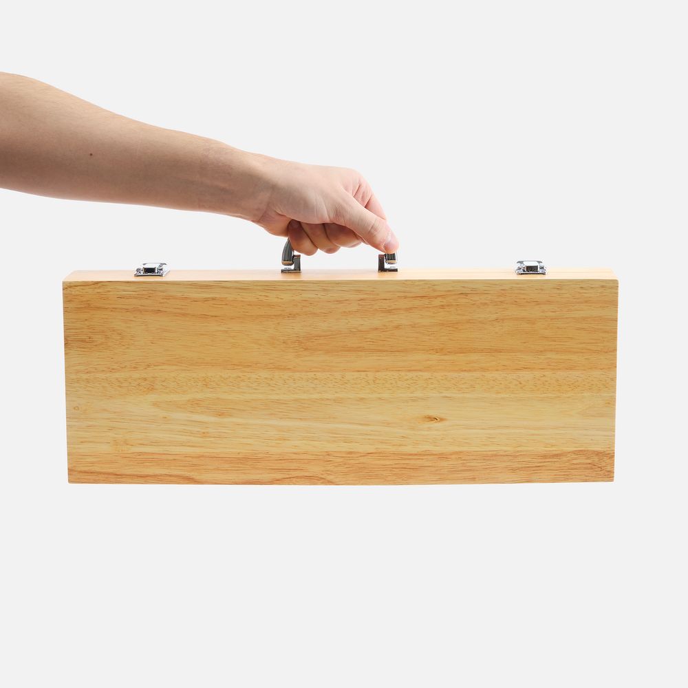 | Материал | нержавеющая сталь, пищевая, коррозионностойкая; ручка - покрытие софт-тач; кейс - дерево |