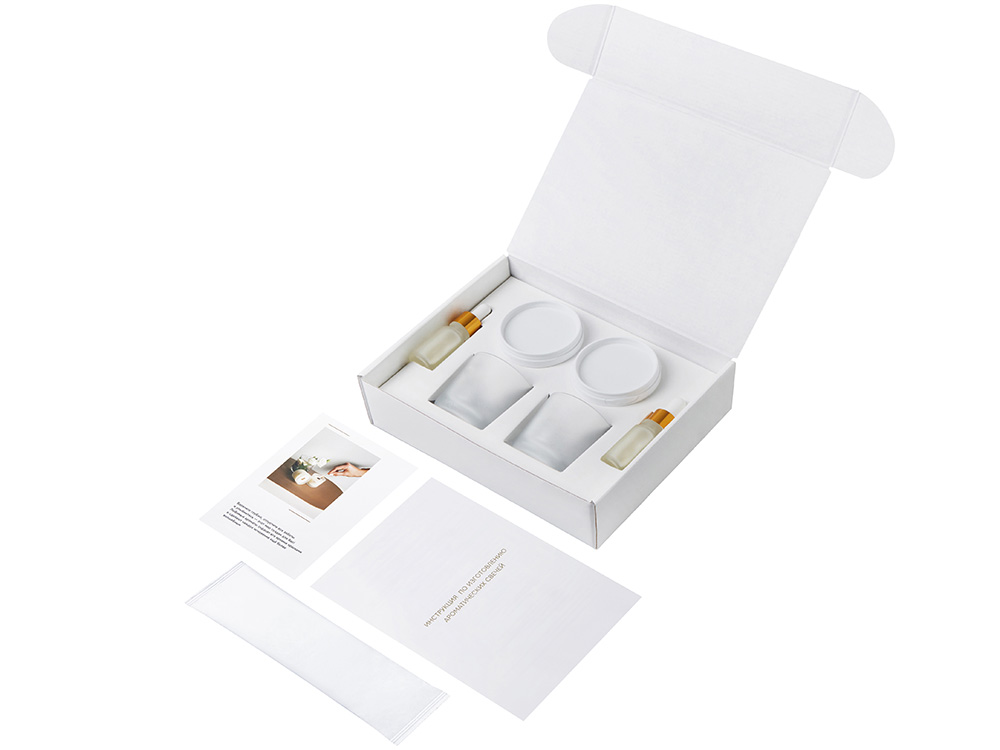 Уникальный набор для изготовления ароматических свечей станет приятным подарком и погрузит в увлекательный процесс. Набор выполнен в подарочной коробке с ложементом, в него входят все необходимые компоненты и подробная инструкция. Откройте для себя удивительный мир ароматов с Lights of Moscow! Вы сможете создать две невероятные композиции, которые точно понравятся Вам и Вашим близким! Условия хранения: — Свечи: +18…+24 °C, вдали от источников тепла, сквозняков и прямых солнечных лучей. — Рекомендуемая влажность — не более 50%. — Избегайте длительного воздействия яркого света. В комплекте: Подарочная коробка с ложементом - 1 шт. Стакан стеклянный матовый 100 мл - 2 шт. Контейнер с соевым воском – 2 шт. Флакон стеклянный матовый с ароматической отдушкой – 2 шт. Деревянный фитиль с держателем – 1 шт. Хлопковый фитиль с держателем - 1 шт. Наклейка для крепления фитиля - 2 шт. Палочка для перемешивания - 2 шт. Салфетка - 1 шт. Перчатка - 1 шт. Открытка - 1 шт. Инструкция по изготовлению ароматических свечей – 1 шт.
