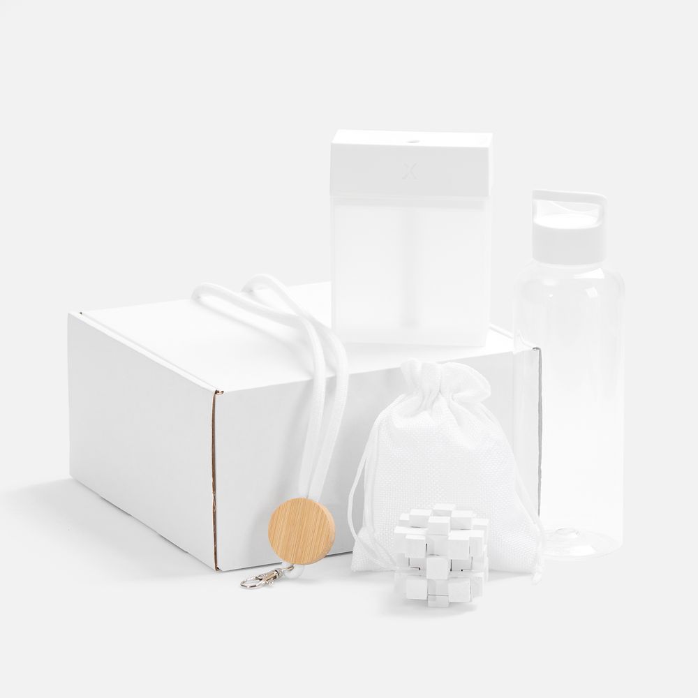 | Материал | увлажнитель - пластик; головоломка - дерево, мешок - хлопок; бутылка - пластик, ПЭТ; шнурок - дерево, хлопок; металл; коробка - микрогофрокартон, плотность 385 г/м² |