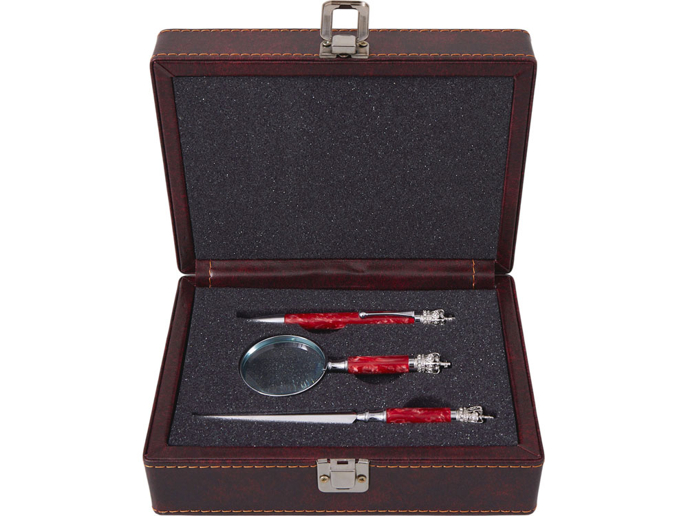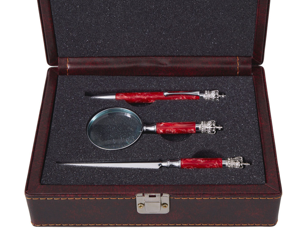 | Комплектность | ручка шариковая d1,1 х 13 см, лупа d5 х 12,1 см, нож для бумаг d1,1 х 16,5 см |