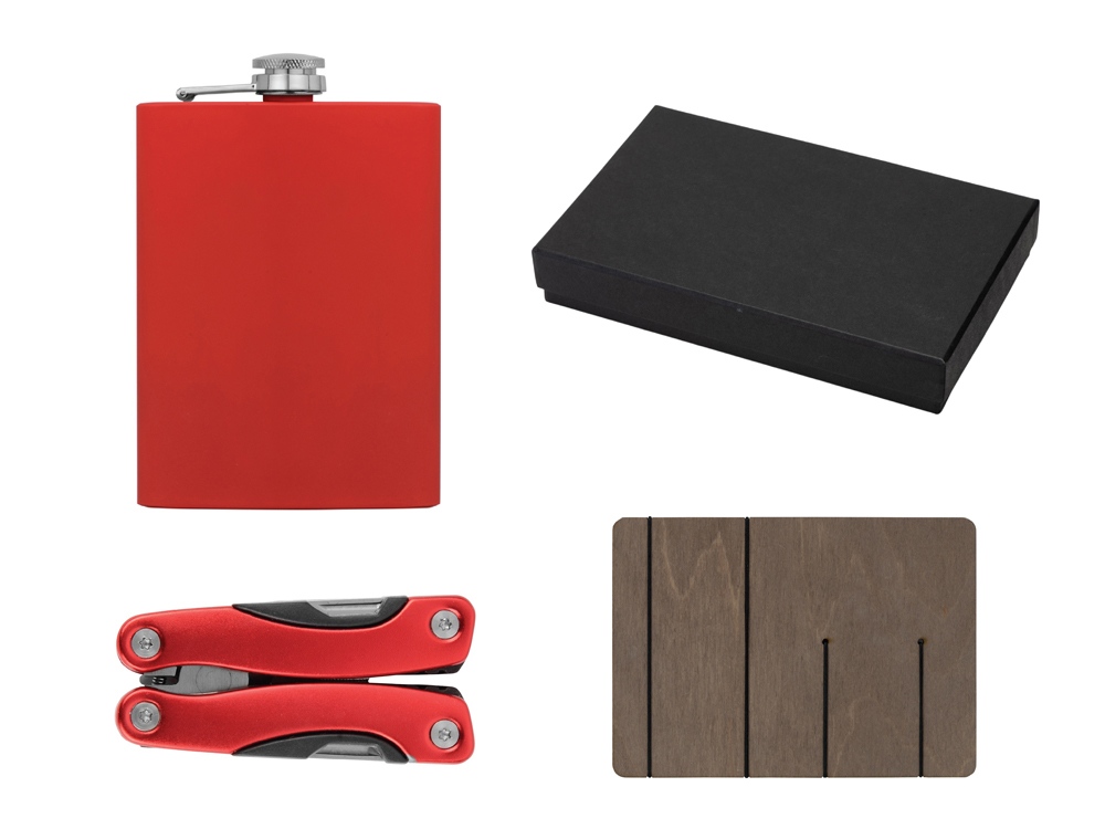 | Материал товара | ложемент - фанера, резинка, фляжка - нержавеющая cталь 304 марки с покрытием soft-touch, мультиинструмент - металл, полиэстер, коробка - картон |