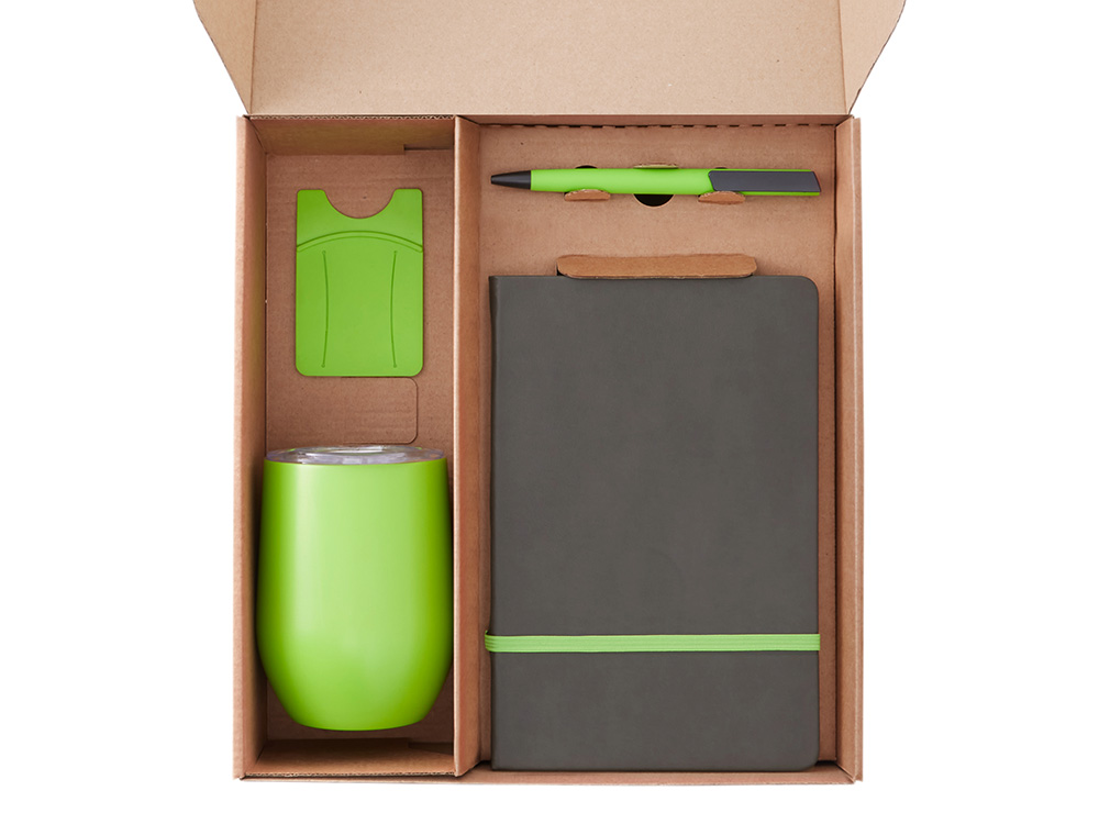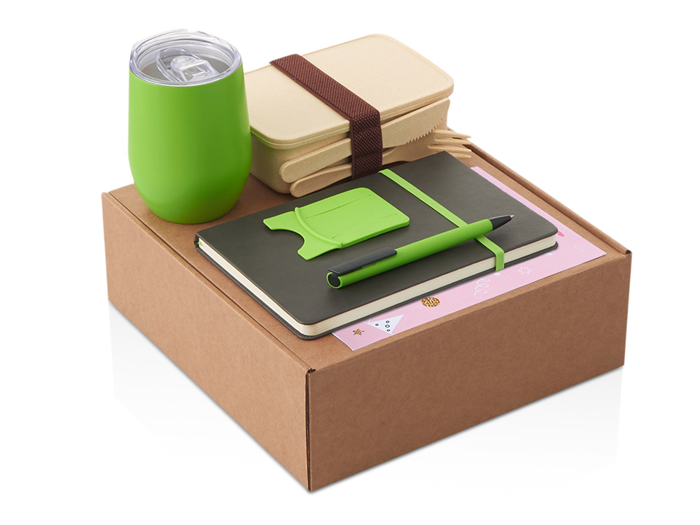 Набор с термокружкой, блокнотом, ручкой и ланчбоксом Refreshment, зеленое яблоко купить оптом и в розницу с нанесением логотипа в Москве