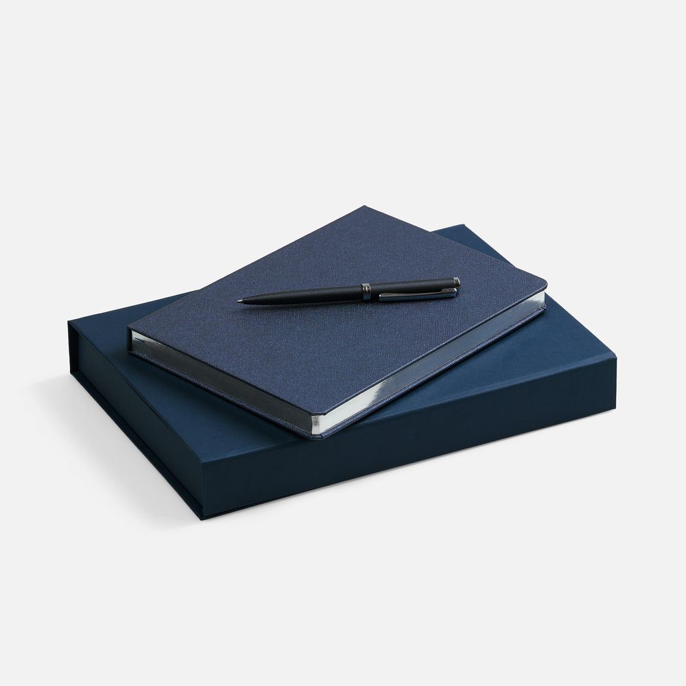 • Коробка Silk с ложементом под ежедневник 15х21 см и ручку, ver.2, синяя