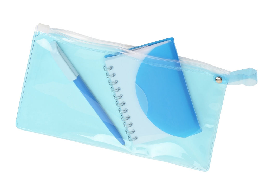 | Цвет товара | блокнот- прозрачный/голубой, ручка- голубой/белый, пенал- голубой прозрачный |