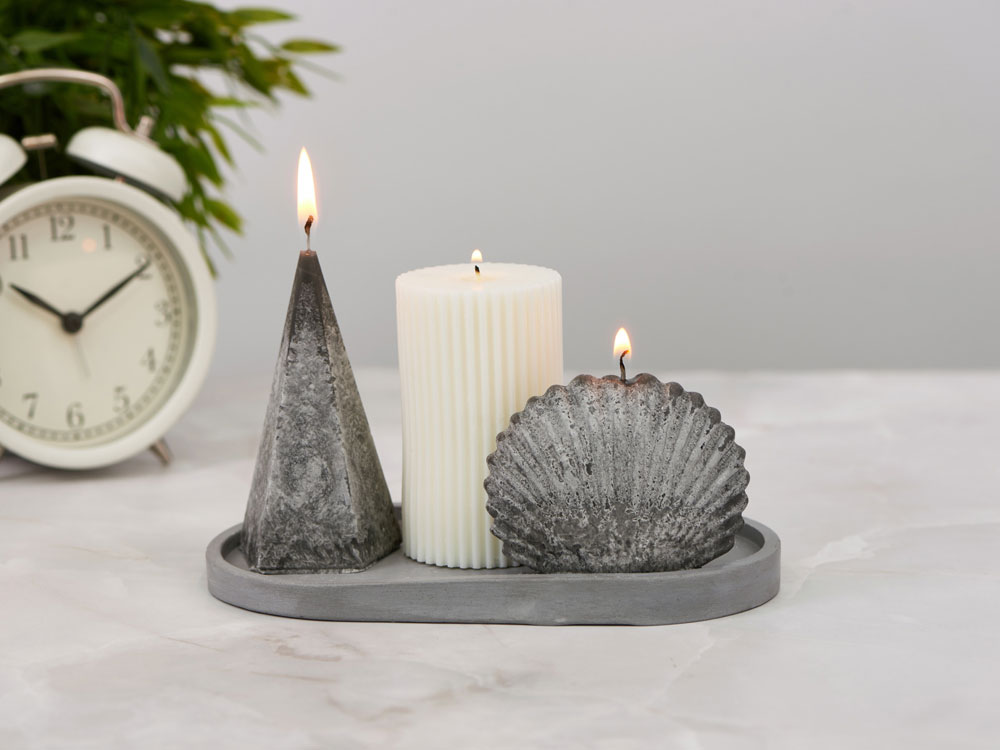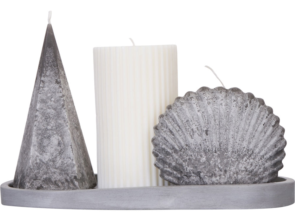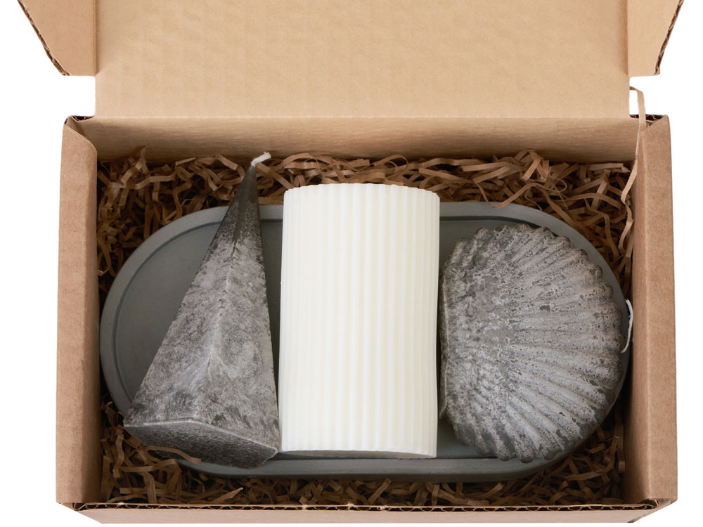 | Комплектность | свеча столбик, свеча пирамида, свеча ракушка, подставка гипсобетон, упаковочный материал |
