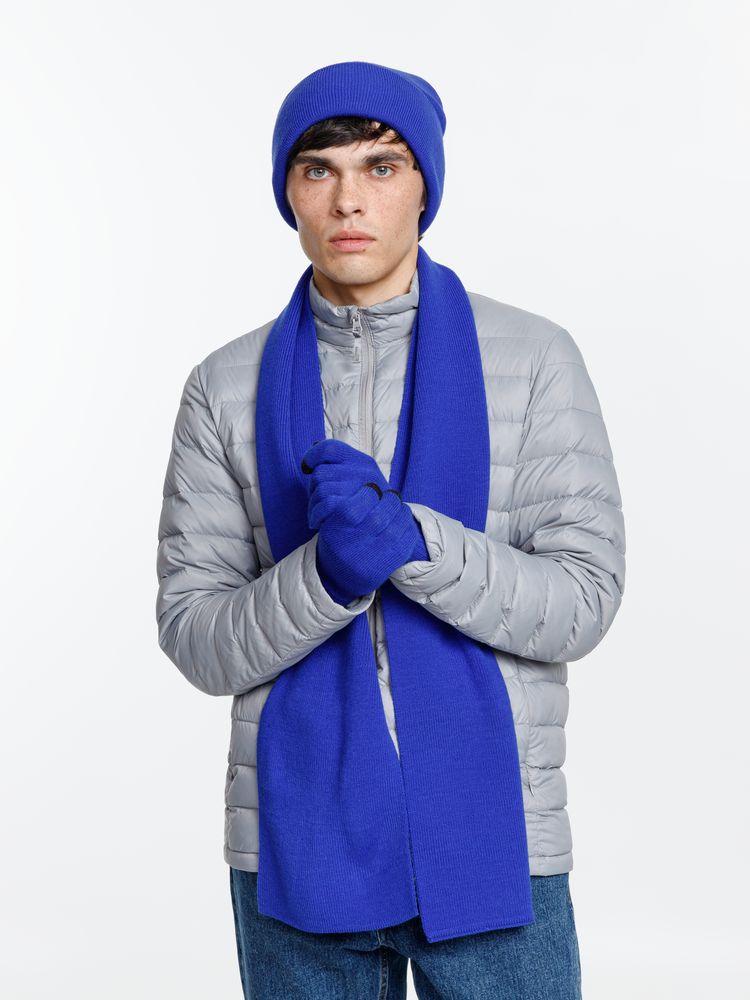 В комплект входят двухслойная шапка с регулируемым отворотом и легкий однослойный шарф из мягкой акриловой пряжи, сохраняющие тепло и защищающие от ветра, а также эргономичные перчатки со специальными токопроводящими волокнами на кончиках пальцев, позволяющие свободно пользоваться смартфоном даже в холодную погоду. Универсальная цветовая гамма и лаконичный дизайн делают набор органичным дополнением к любой верхней одежде.
