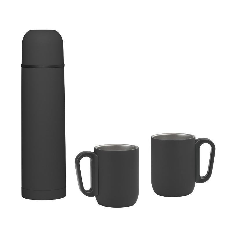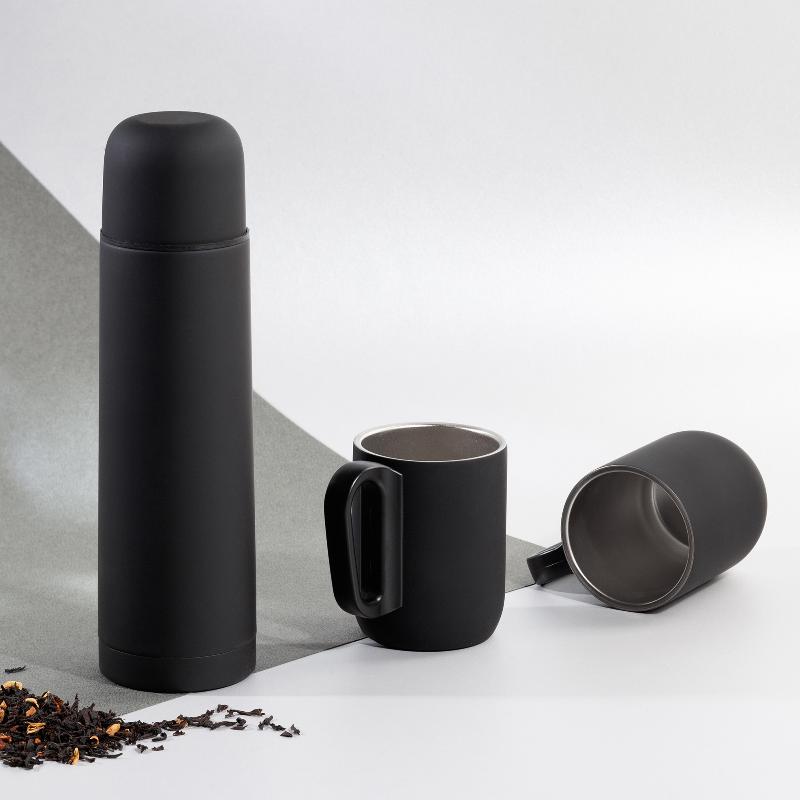 • Возможность нанесения логотипа или гравировки на термосе, кружках и сумке-чехле (разные методы печати: тампопечать, УФ-печать, лазерная гравировка)