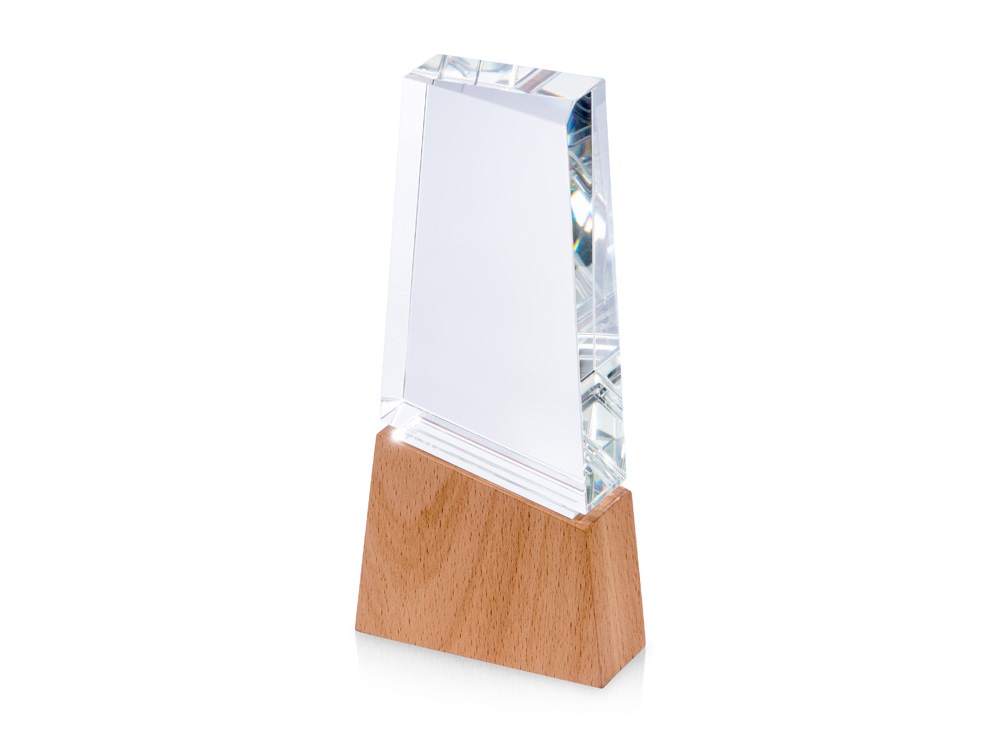 Награда выполнена из прозрачного стекла, имеет необычную форму и расположена на деревянном постаменте. Лаконична и минималистична. • Строгий дизайн • Нестандартная геометрическая форма • Деревянная подставка