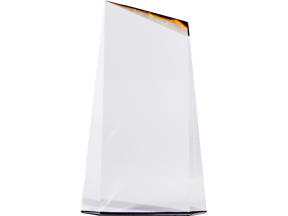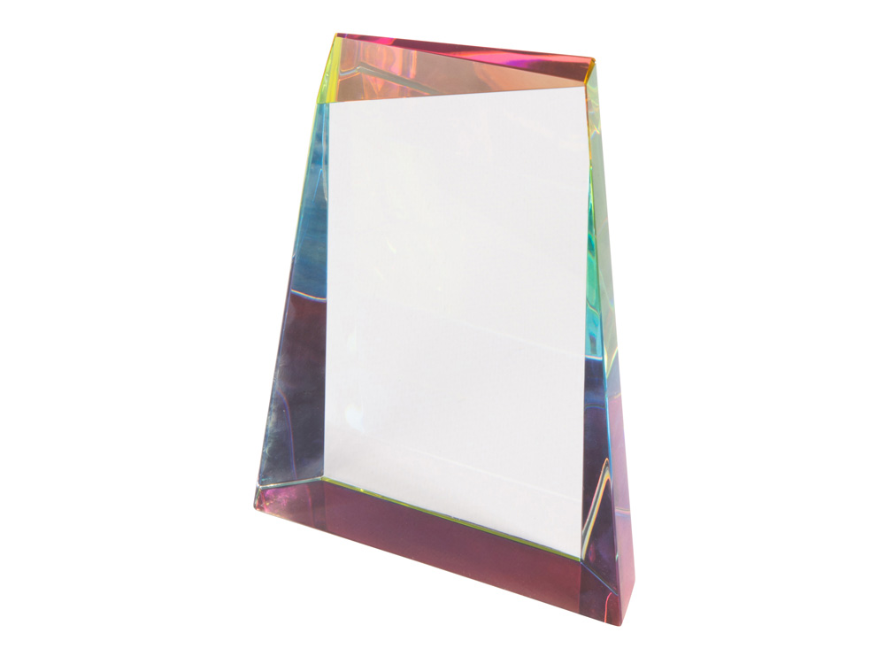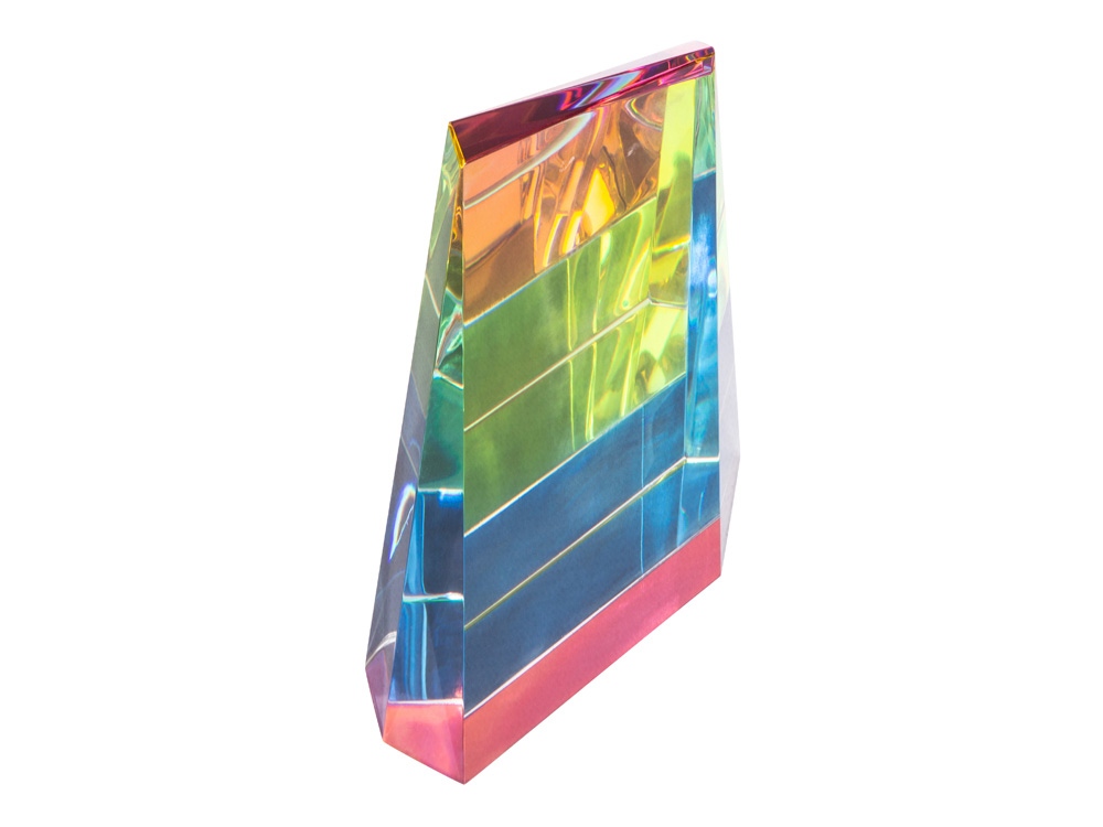 Награда выполнена из прозрачного стекла, переливающегося на свету всеми цветами радуги, и не имеет постамента. Под разными углами награда сияет разными цветами, а иногда и всем радужным спектром сразу. Благодаря необычной форме, напоминающей философский камень, и сиянию в лучах света она смотрится очень оригинально. • Интересный дизайн • Переливается всеми цветами радуги