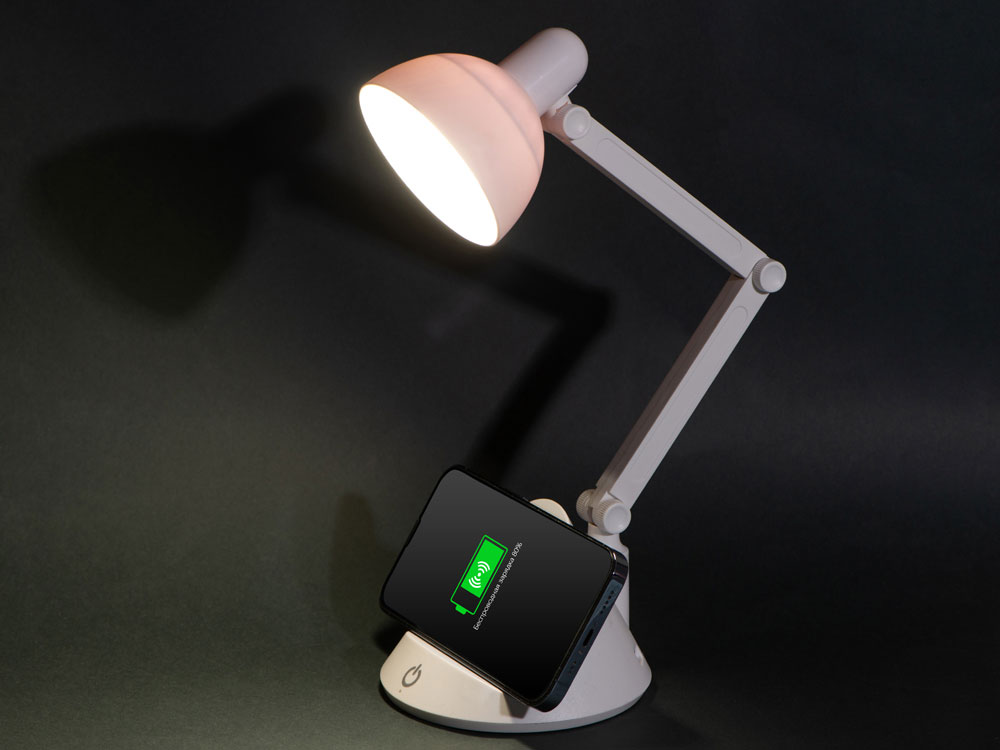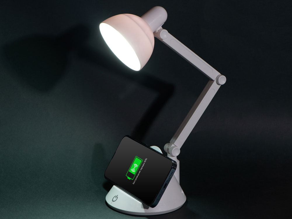 Лампа Bendy, напоминающая большую настольную, куда сложнее, чем кажется на первый взгляд! Не просто светит, но и заряжает смартфон при помощи встроенной беспроводной зарядки. Светильник компактный, его можно зафиксировать в различных положениях. Имеет три режима освещения — теплый, нейтральный и холодный. - беспроводная зарядка Qi-совместимых устройств - три режима освещения: теплый, нейтральный, холодный - фиксируется в различных положениях - диммер: при длительном нажатии интенсивность света регулируется