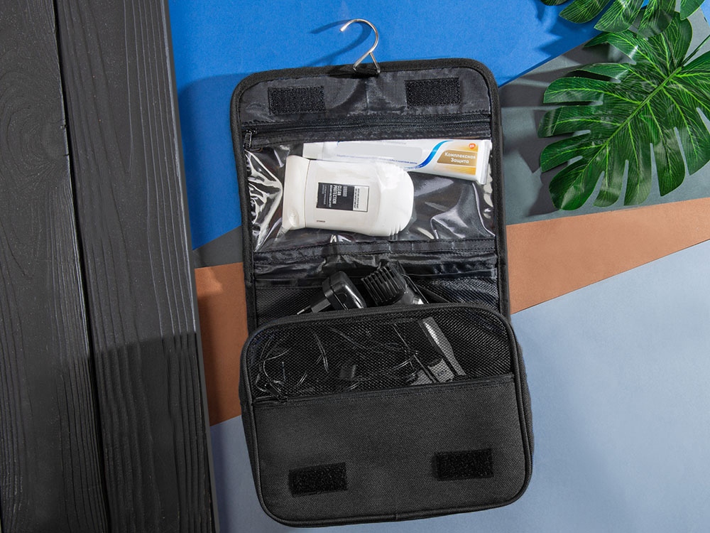 Несессер Planar оснащен металлическим крючком для подвешивания, который в сложенном виде убирается внутрь и не будет вам мешать. Для переноски несессер имеет ручку снаружи, а еще вы найдете плоский вместительный карман на его задней стороне. Клапан несессера закрывается на липучки и имеет три кармана — большой на молнии из прозрачного материала, который легко моется, даже в случае, если флакон изнутри разгерметизировался, и два из сетки, куда можно положить необходимые мелочи и которые удобнее использовать в висящем виде. Основное отделение несессера — объемное, с сетчатой вставкой для обзора, на молнии, имеет также наружный непрозрачный карман на молнии. Внутри этого отделения — два боковых объемных кармана под флаконы или баночки и два на стенке, а также есть укрепляющая накладка на дно, которую при необходимости можно отодвинуть для экономии места. Несессер является частью линейки Planar, благодаря чему его можно включать в состав сетов дорожных аксессуаров в едином стиле. - легко и быстро раскладывается - прозрачный карман из ПВХ для флаконов с жидкостями, который легко очистить - выполнен в стиле серии Planar, можно комбинировать с другими изделиями серии - множество разноплановых карманов под разное содержимое и цели - крючок для подвешивания - вместительный