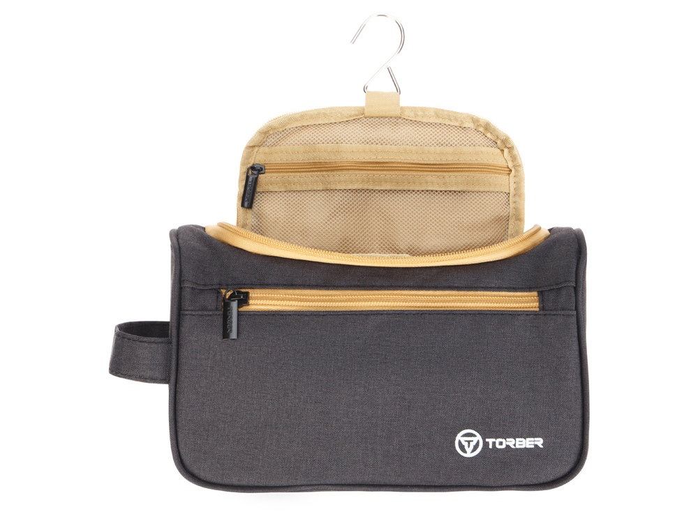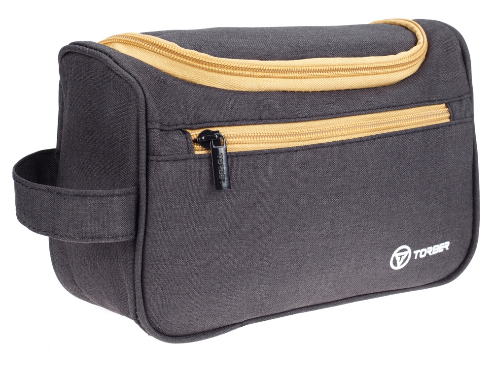 Несессер TORBER, дорожный, чёрный/бежевый, полиэстер 300D, 24 х 16 х 9 см купить оптом и в розницу с нанесением логотипа в Москве