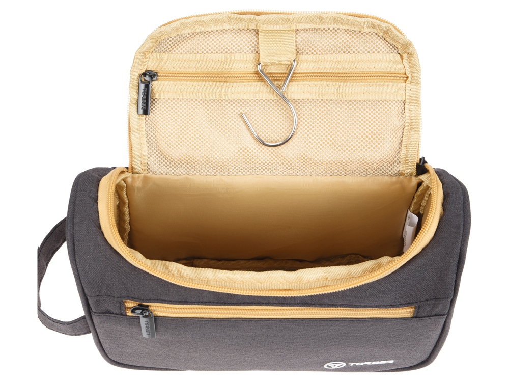 Компактный несессер TORBER T055-BEI имеет оптимальный размер – 24x16x9 см, позволяет комфортно разместить различные принадлежности и аксессуары. Несессер выполнен из чёрного полиэстера c внешней отделкой и внутренней тканью бордового цвета. В нём можно хранить или транспортировать личные вещи и гаджеты. Молния основного отделения расположена в верхней части сумки, что увеличивает объем полезного пространства и позволяет разместить максимальное количество вещей. Имеется крючок для подвешивания. С внешней стороны расположен передний карман на молнии. Для переноски есть удобная боковая ручка.