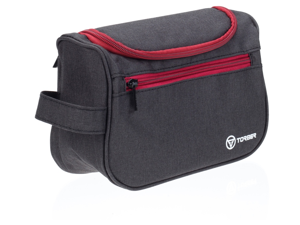 Несессер TORBER, дорожный, чёрный/бордовый, полиэстер 300D, 24 х 16 х 9 см