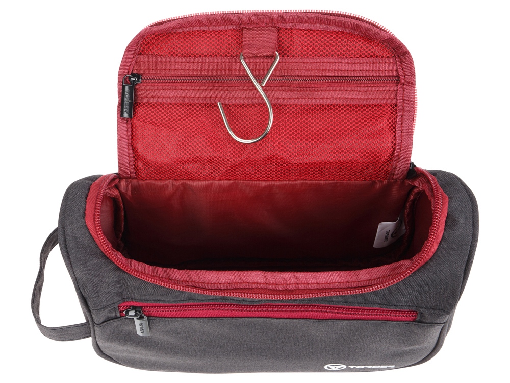 Несессер TORBER, дорожный, чёрный/бордовый, полиэстер 300D, 24 х 16 х 9 см купить оптом и в розницу с нанесением логотипа в Москве