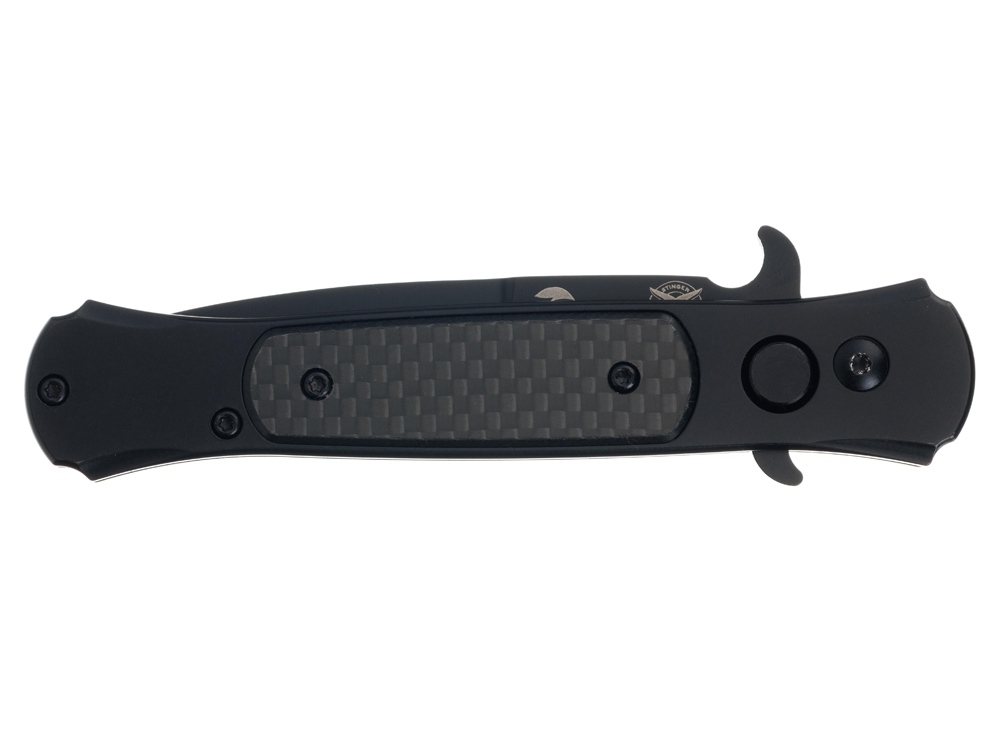 НОЖ СКЛАДНОЙ STINGER Автоматический складной нож из высококачественных материалов, идеально подойдет для повседневного использования. Рукоять ножа изготовлена из нержавеющей стали с накладками из карбона (углепластика) – это полимерный материал с композитным составом, изготовленный из переплетенных нитей углеродного волокна с использованием эпоксидных смол. Карбон является легким и исключительно прочным материалом, стойким к высоким температурам и агрессивным средам, отлично переносит влагу. Рукоять ножа собрана на втулках - бонках, поэтому при необходимости его можно легко промыть. На рукояти расположена съемная клипса для удобного размещения ножа в кармане. Нож мгновенно открывается и надежно фиксируется благодаря замку Button Lock. Дополнительные упоры на клинке могут выполнять функцию гарды, предотвращая соскальзывание руки на лезвие клинка. Клинок изготовлен из нержавеющей стали 8CR14MoV. Основное преимущество этой стали - отличное противодействие коррозии благодаря высокому содержанию хрома (14,5%). Сталь 8CR14MoV относится к высокоуглеродистым сталям (0,8%), углерод в составе придает сплаву твердость в диапазоне 57-59 HRC, что позволяет режущей кромке лезвия длительное время оставаться острой. Оптимальное содержание легирующих элементов придает стали гибкость, лезвие хорошо поддается правке и заточке. Клинок из стали 8CR14MoV отличается высокой прочностью и устойчивостью к износу, имеет долгий срок службы, обеспечивает качественный и точный срез. Характеристики: Материал клинка: нержавеющая сталь 8CR14MoV Твердость по шкале Роквелла: 57-59 HRC Материал рукояти: нержавеющая сталь/карбон Метод открывания клинка: автомат Фиксатор клинка: Button Lock Длина ножа: 205 мм Длина клинка: 87 мм Толщина клинка: 3,5 мм Вес: 154 г Цвет рукояти: черный Особенности: рукоять с клипом В комплекте: нейлоновый чехол