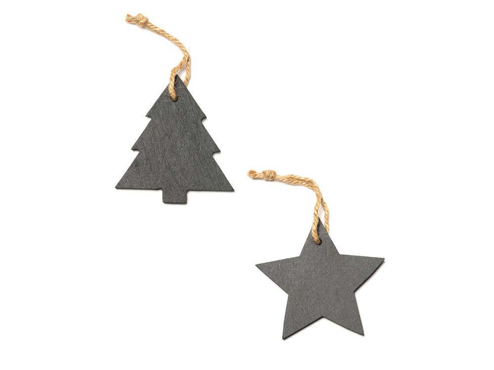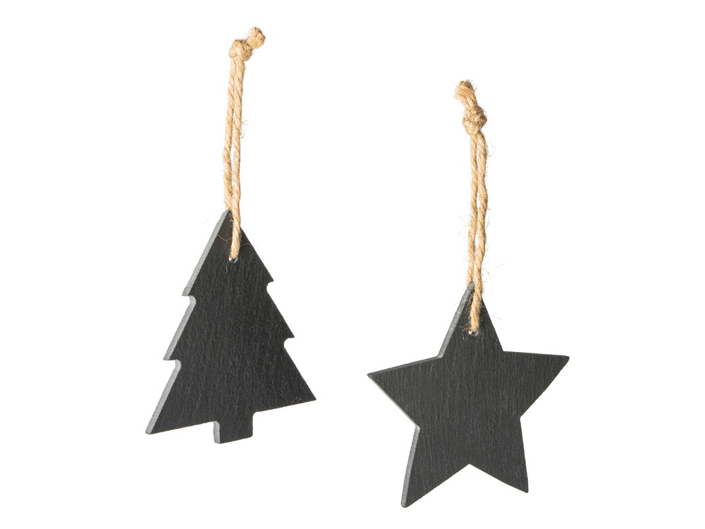 Новогоднее украшение из сланца доступно в двух вариантах: елка и звезда. В комплекте петля для подвешивания на елку.