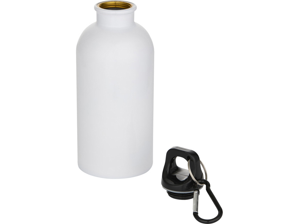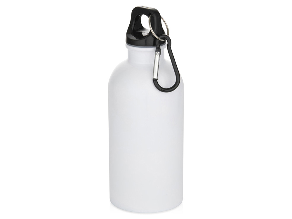 Одностенная бутылка для воды с карабином Oregon, изготовленная из нержавеющей стали, сертифицированной по стандарту RCS, объемом 400 мл - Белый купить оптом и в розницу с нанесением логотипа в Москве