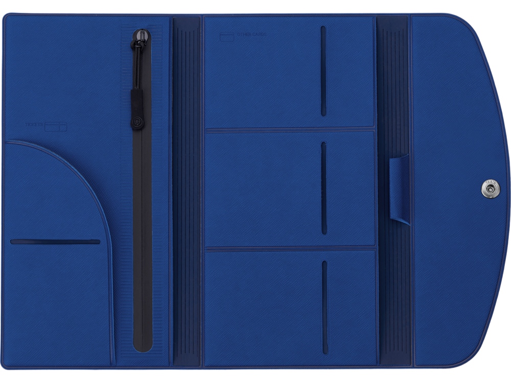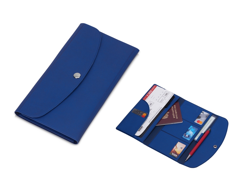 Органайзер для документов на кнопке с отделением для купюр и ручки, упаковка в индивидуальный пакет, синий/темно-синий