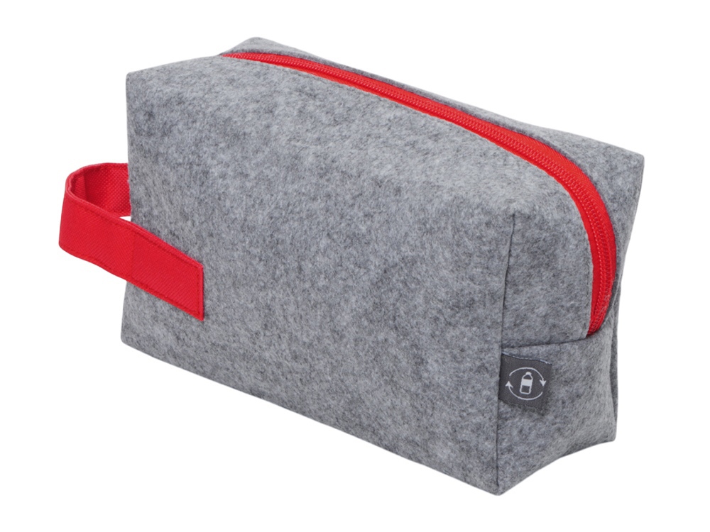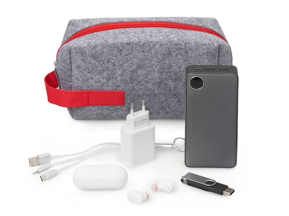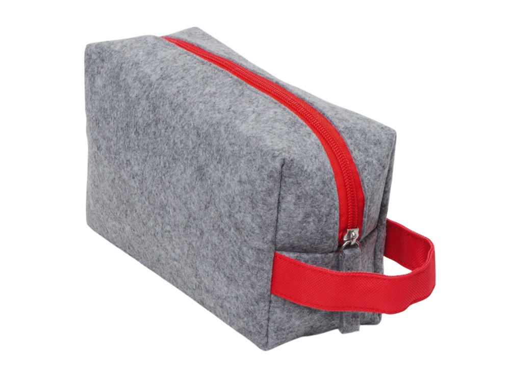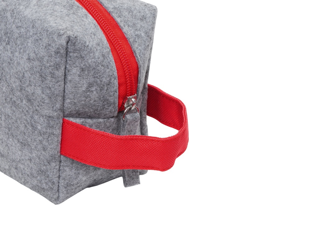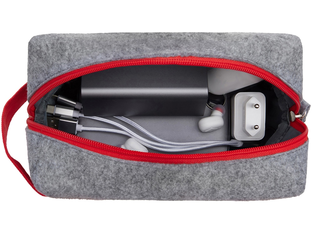 Органайзер для электроники и проводов Felt из RPET-фетра с ручкой, серый с красным купить оптом и в розницу с нанесением логотипа в Москве