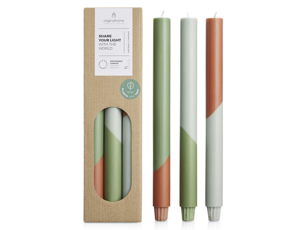 Originalhome Eden диагональные свечи - набор из 3 штук - Зеленый яркий