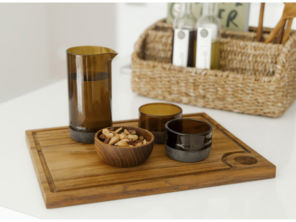 Безопасная и прочная разделочная доска из корня тикового дерева. Ее можно использовать для измельчения продуктов или в качестве подноса. Эта разделочная доска с минималистичным природным дизайном станет жемчужиной на каждой кухне. Размер: 41 x 17 x 2 см. Recycled wood.
