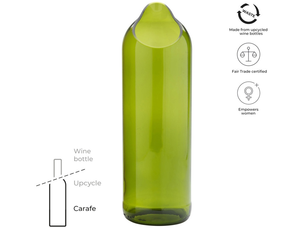 Ваза из переработанных винных бутылок объемом 750 мл. Эта ваза придает простоту и элегантность, а также является стильным аксессуаром для цветов. Переработанное стекло.