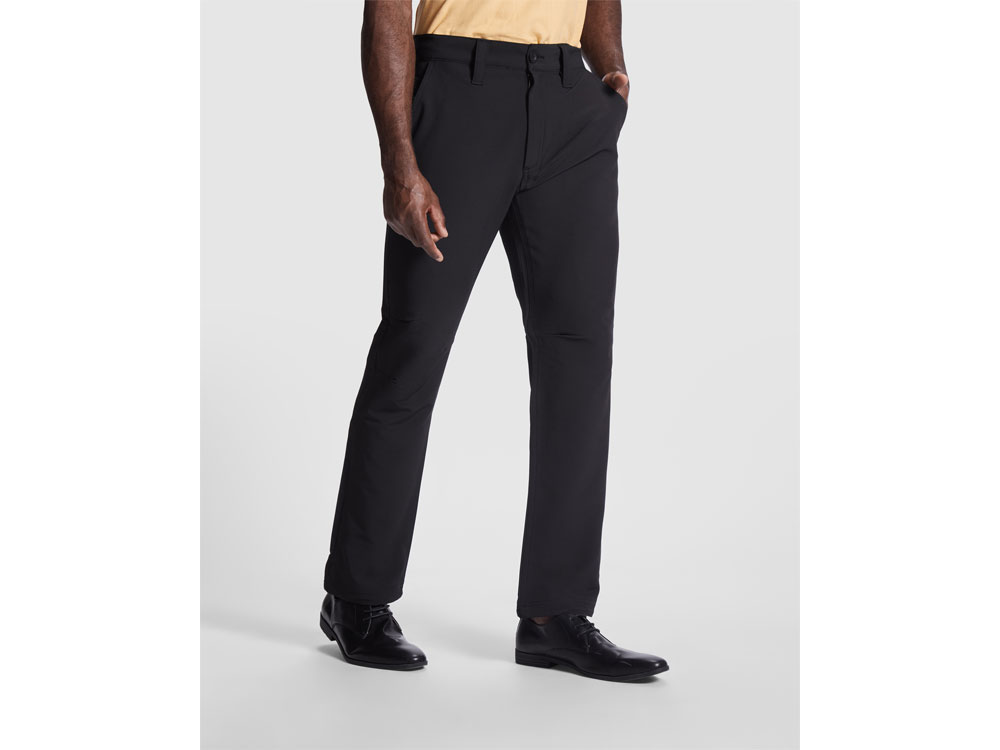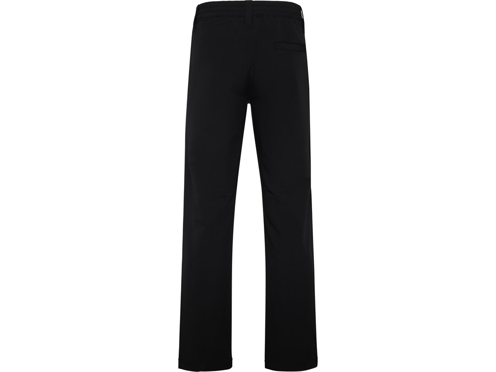 Длинные брюки унисекс из техничной ткани. - Регулируемый эластичный пояс. - Шлевки. - Два боковых наклонных кармана. - Два боковых кармана в швах на потайных молниях. - Задний карман на кнопке. - Защипы на коленях. - Двойной шов на внутренней стороне штанин, шаговом шве и подгибе низа. - Пластиковые регуляторы с эластичной резинкой по низу.