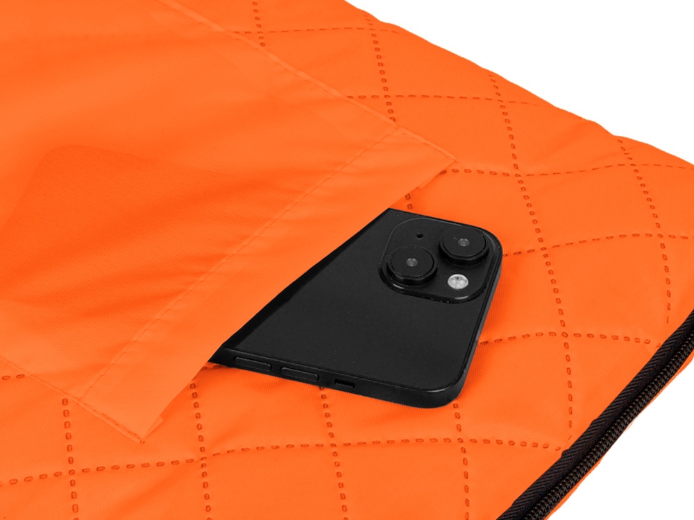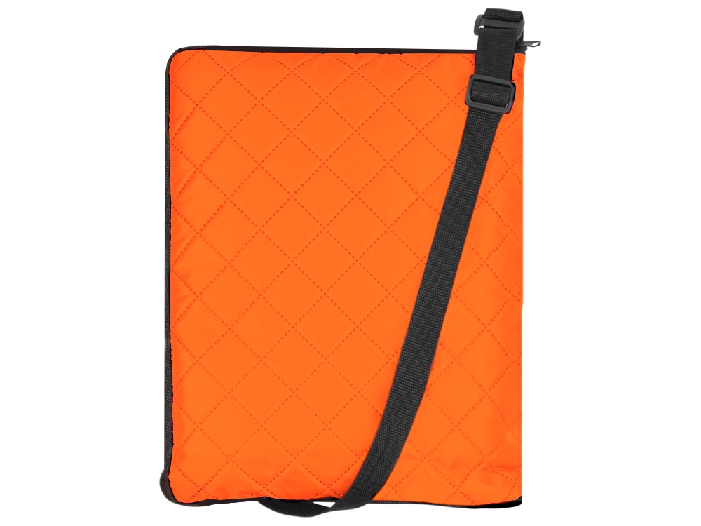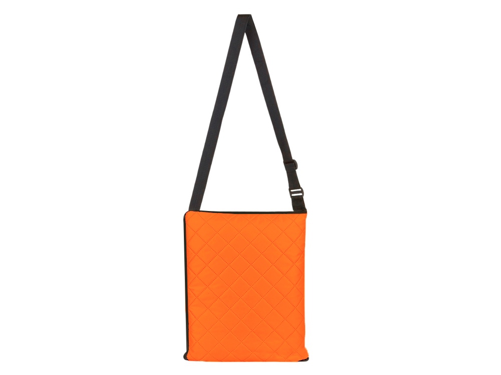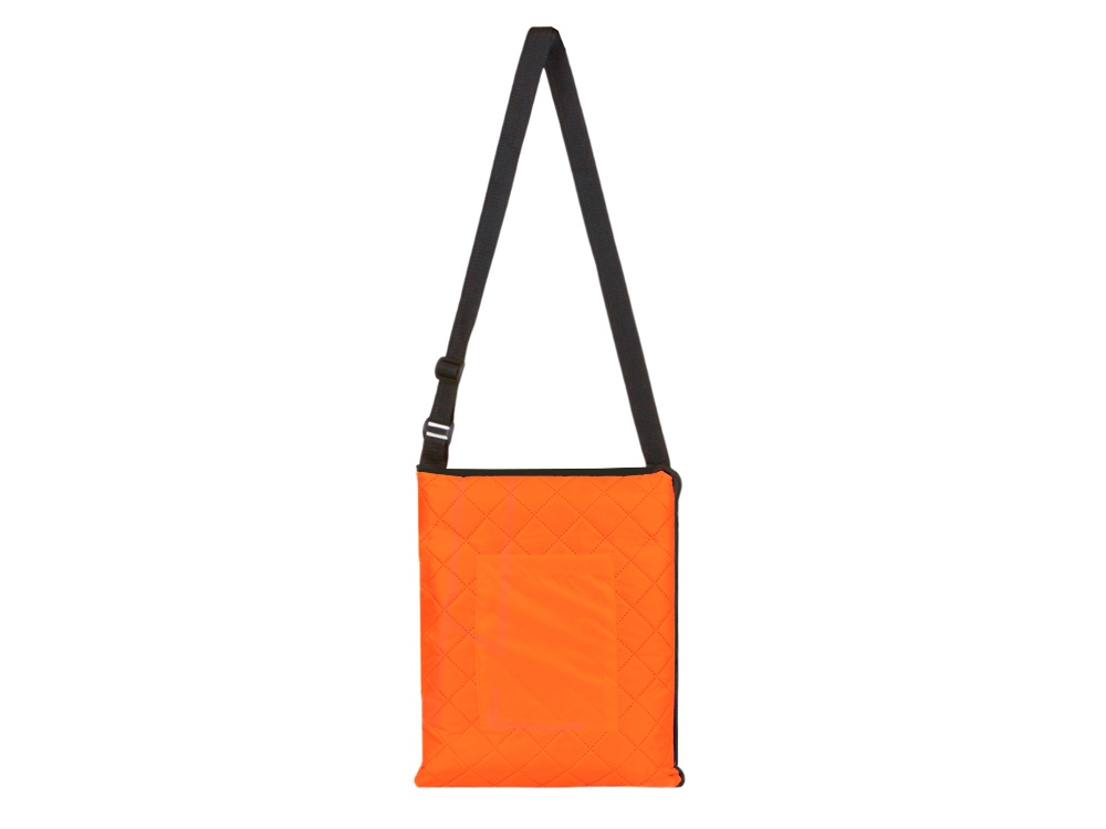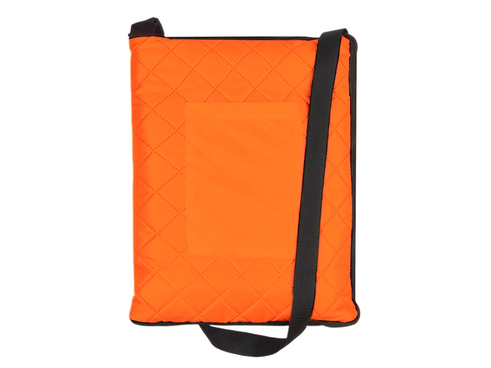 Двухсторонний плед с водоотталкивающим покрытием с одной стороны и мягким флисом с другой. Складывается в сумку на плечо и фиксируется с помощью молнии. В собранном виде имеет регулируемый по длине ремень для переноски и наружный карман для мелочей.