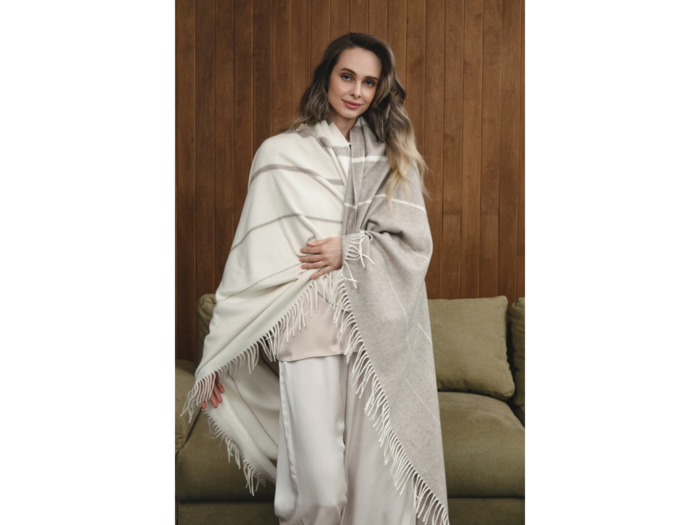 • Высококачественный плед коллаборации брендов Marzotto x Valerie Concept изготовлен из натурального кашемира. • Изделие имеет сертификат качества OEKO-TEX® и WOOLMARK. • Плед украшен бахромой, лаконичный дизайн органично впишется в интерьер и станет стильным украшением вашего дома. Постелите плед на диван или на кровать, возьмите с собой на дачу или используйте плед-покрывало в кресле-качалке. • Плед продается в подарочной упаковке и станет отличным подарком для друзей и близких.