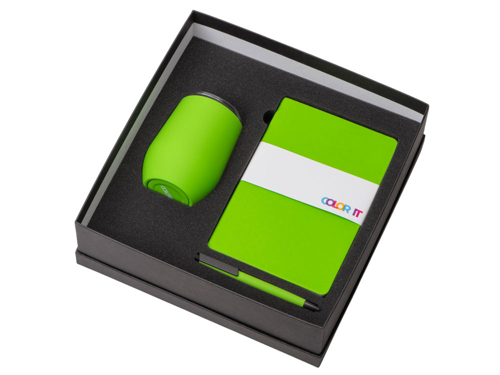 Color It — линейка, в которую входят хиты мерча в десяти самых популярных цветах. Еще никогда собрать сет под свой брендбук не было так просто. Широкая цветовая палитра серии позволяет создать идеальный набор в едином оттенке Pantone. Все товары имеют тактильно приятное покрытие софт-тач. Сет поставляется в коробке: мы продумали все, включая подарочную упаковку, за вас — осталось нанести лого! Термокружка оснащена крышкой-слайдером с силиконовым кольцом. Благодаря вакуумной изоляции и двойным стенкам, она сохраняет напитки горячими в течение 6 часов, а холодными - 12 часов. Бизнес-блокнот в твёрдой обложке имеет ляссе в тон обложки и среза. Бумажный блок разлинован в линейку и выполнен из бумаги, полученной из древесины из специальных восполняемых лесных ресурсов, имеет сертификат FSC. Тонкое письмо ручки обеспечивается пишущим узлом с толщиной письма 0,5 мм с нажимным механизмом. Ручка имеет сменный стержень, поэтому такой мерч прослужит дольше обычной одноразовой ручки, долго напоминая о вас клиентам. - объём термокружки: 370 мл; - блокнот А5 128 листов; - ручка с необычным слайдером; - подарочная упаковка из картона, оклеенного дизайнерской бумагой уже включена в набор.