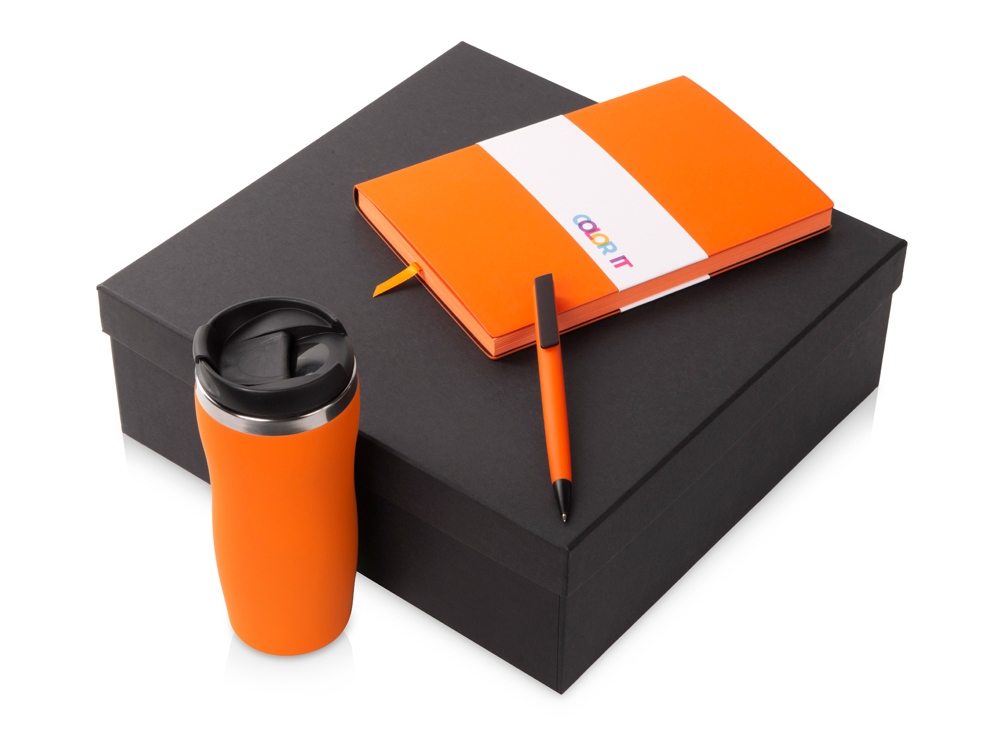 Color It — линейка, в которую входят хиты мерча в десяти самых популярных цветах. Еще никогда собрать сет под свой брендбук не было так просто. Широкая цветовая палитра серии позволяет создать идеальный набор в едином оттенке Pantone. Все товары имеют тактильно приятное покрытие софт-тач. Сет поставляется в коробке: мы продумали все, включая подарочную упаковку, за вас — осталось нанести лого! Термокружка оснащена плотно завинчивающейся крышкой, которая исключает проливание содержимого. Откидной клапан позволяет пить, не снимая крышку. Сохранение температуры осуществляется благодаря вакуумной изоляции и двойным стенкам. Бизнес-блокнот в гибкой обложке имеет ляссе в тон обложки и среза. Бумажный блок разлинован в линейку и выполнен из бумаги, полученной из древесины из специальных восполняемых лесных ресурсов, имеет сертификат FSC. Тонкое письмо ручки обеспечивается пишущим узлом с толщиной письма 0,5 мм с нажимным механизмом. Ручка имеет сменный стержень, поэтому такой мерч прослужит дольше обычной одноразовой ручки, долго напоминая о вас клиентам. - объём термокружки: 350 мл; - блокнот А5 128 листов; - ручка с необычным слайдером; - - подарочная упаковка из картона, оклеенного дизайнерской бумагой уже включена в набор.