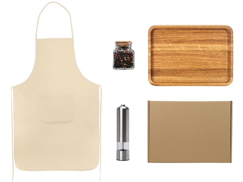 | Материал товара | флеш-карта - пластик, металл, мельница - нержавеющая сталь, оргстекло, ПП пластик, керамические жернова, поднос - дуб, фартук - хлопок, коробка - картон |