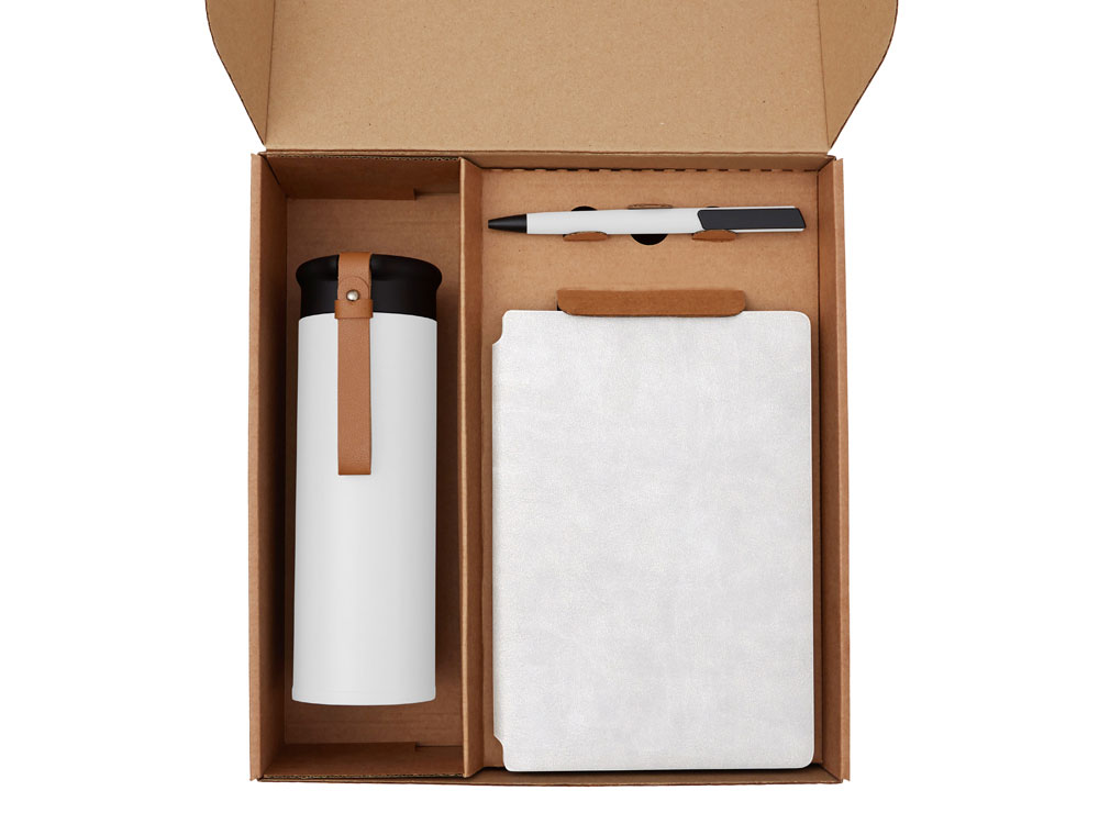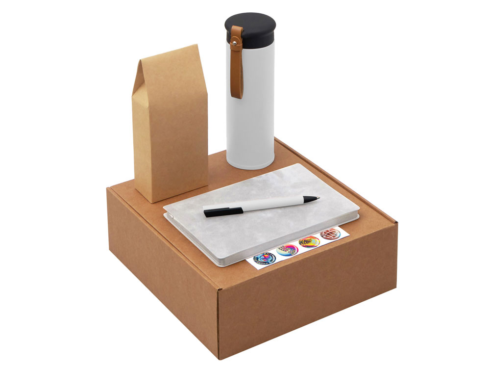 Функциональный и сбалансированный набор для сотрудников, партнёров или клиентов — отлично подойдёт для welcome-боксов, тимбилдингов, внутренних мероприятий и корпоративных праздников. Состав набора: • Блокнот — удобный формат для записей, брифов и ежедневных задач • Ручка — классическая, с необычным слайдером и приятной soft-touch поверхностью делает письмо более комфортным. • Термос из долговечной нержавеющей стали с двойными стенками, вакуумная изоляция между которыми помогает сохранять температуру напитков в течение долгого времени. Термос идеально подходит для заваривания чая: специально для этого в комплекте идет металлическое ситечко с ручкой, которое не пропустит ни одной чаинки. • Классический чёрный байховый чай поможет взбодриться и освежить мысли, поэтому его можно пить утром для лёгкого пробуждения или днём — чтобы восстановить силы и сосредоточиться. Вечером он станет приятным завершением дня в сочетании с десертом или лёгкими закусками. • Набор стикеров — для ярких акцентов и персонализации вещей; • Универсальный ложемент обеспечивает аккуратное размещение и надёжную фиксацию элементов, делая набор эффектным и презентабельным при вручении. • Дополнительное преимущество — набор доступен в конструкторе наборов: компоненты можно заменить и собрать индивидуальный вариант под стиль компании или вкусы получателя. • Готовое решение для корпоративных подарков • Все элементы функциональны и актуальны для повседневного использования