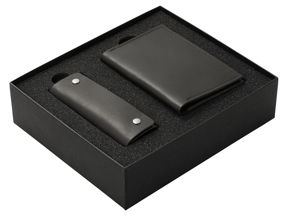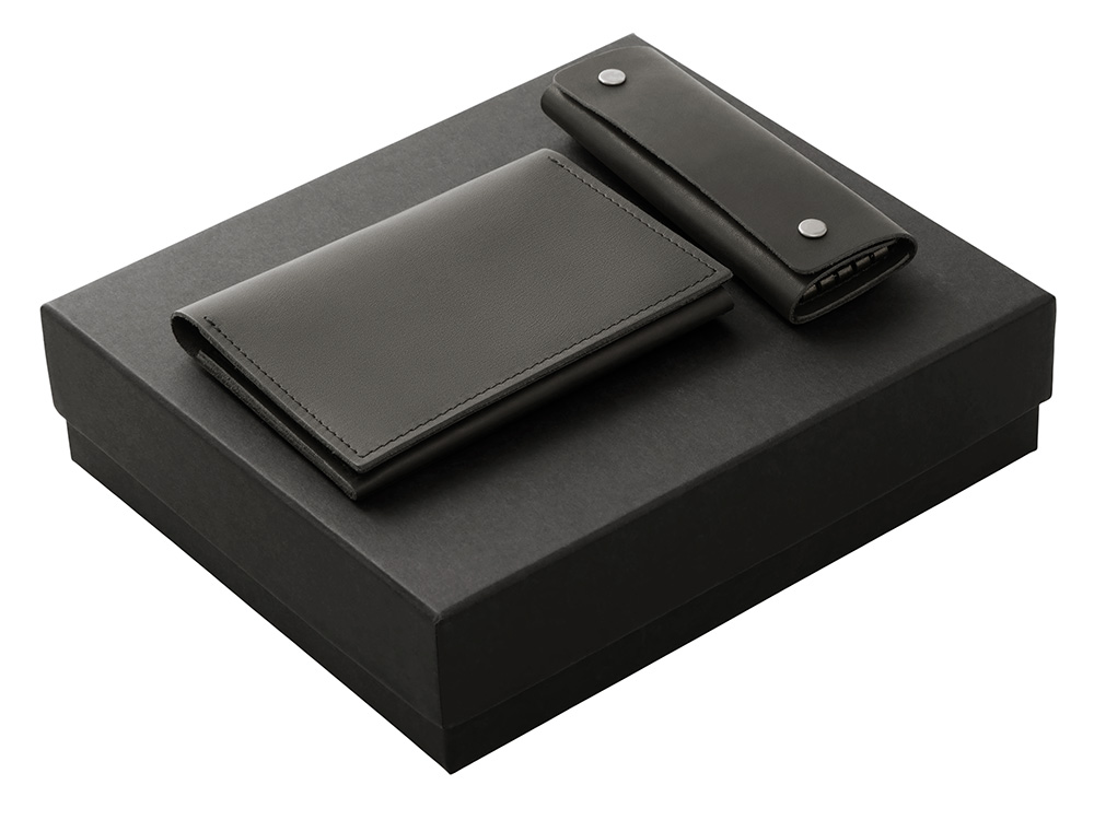 Подарочный набор Long River: обложка для паспорта, ключница (без лого Long River), черная коробка купить оптом и в розницу с нанесением логотипа в Москве