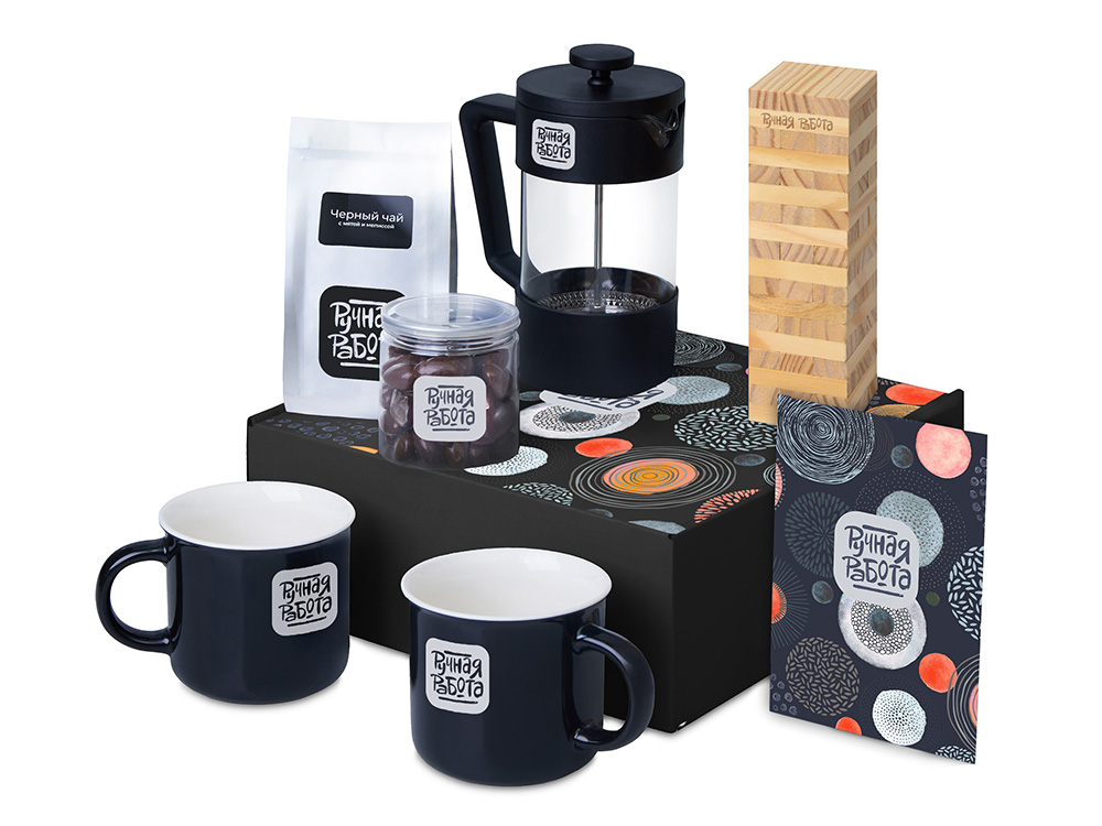 Подарочный набор Re:y. Together с френчпрессом, кружками и дженгой купить оптом и в розницу с нанесением логотипа в Москве