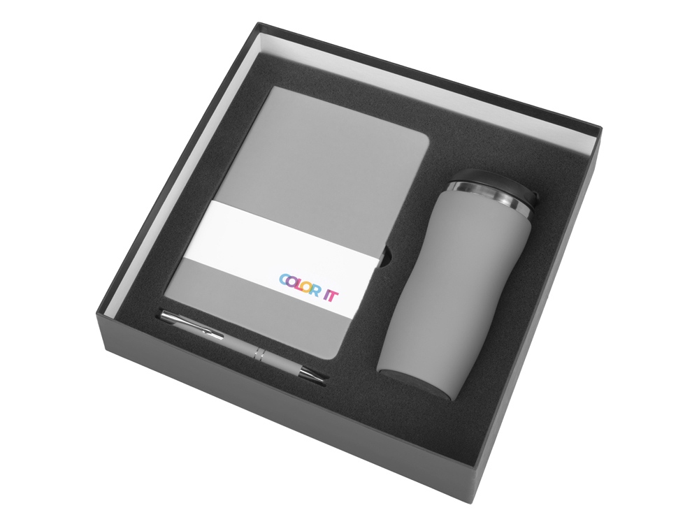 | Материал товара | блокнот - искусственная кожа с покрытием софт-тач, ручка - алюминий с покрытием софт-тач, термокружка - нержавеющая cталь с покрытием софт-тач, коробка - картон |