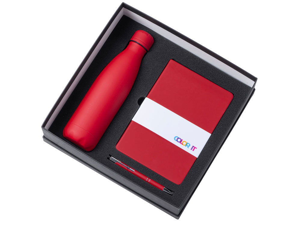 | Материал товара | блокнот - полиуретан с покрытием софт-тач, картон, ручка - алюминий с покрытием софт-тач, термобутылка - нержавеющая cталь с покрытием софт-тач, коробка - картон |