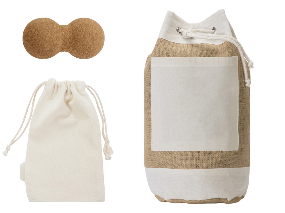 | Материал товара | массажный мяч - пробковый материал, неокрашенный хлопок, рюкзак - 250 г/м2 натуральный джут, 140 г/м2 натуральный хлопок, карман -180 г/м2 натуральный хлопок |
