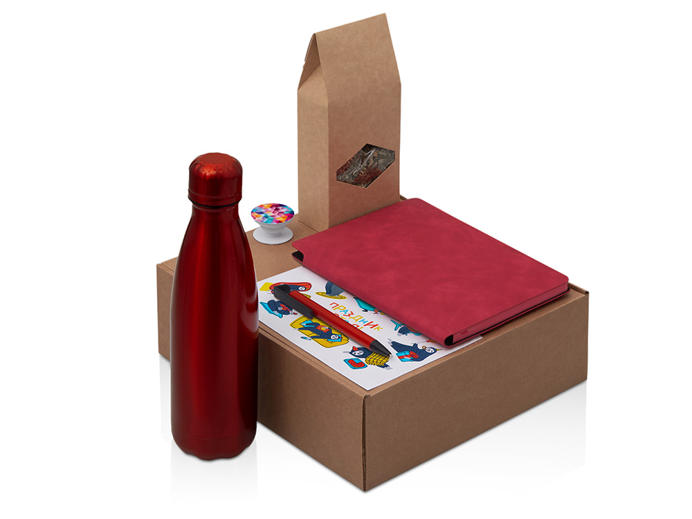 | Материал товара | бутылка - нержавеющая сталь, ручка - металл, пластик, блокнот- полиуретан, FSC бумага, держатель для телефона - пластик, чай - крафт-пакет, коробка - картон |
