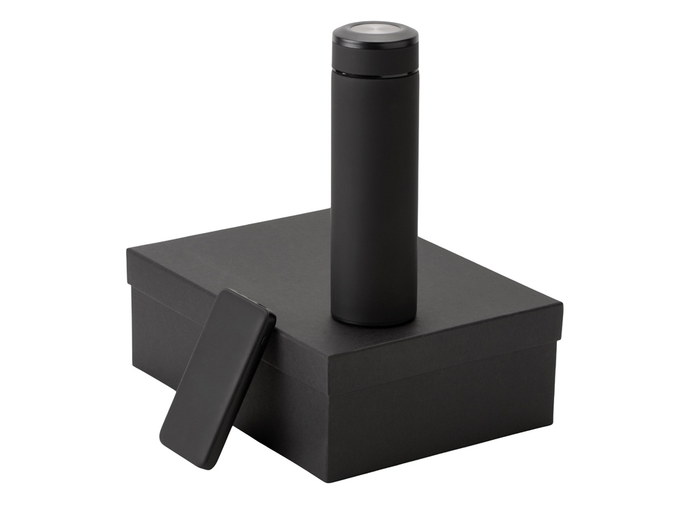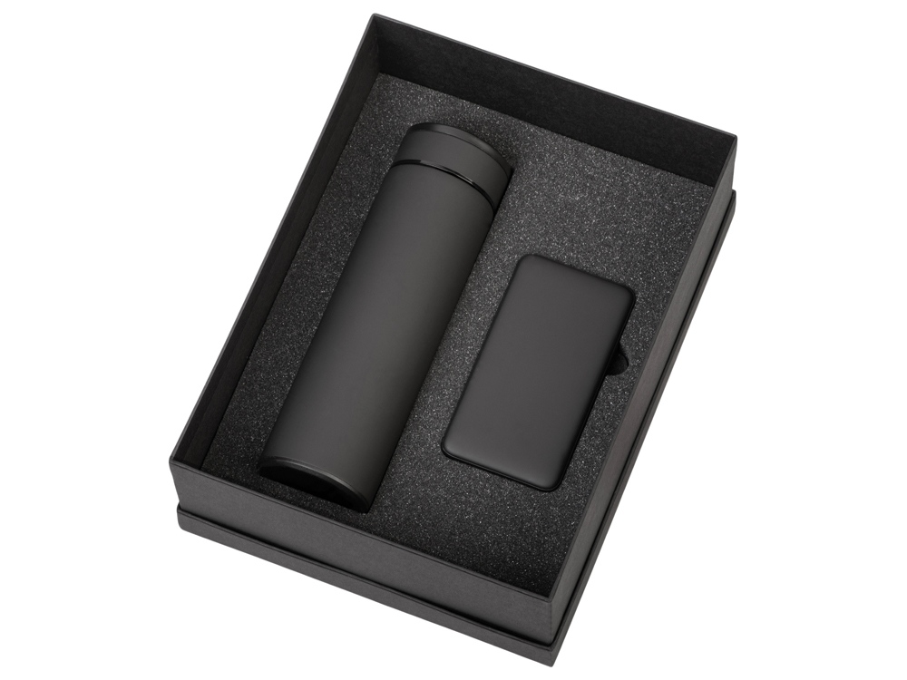 Подарочный набор с термосом и повербанком С2, черный купить оптом и в розницу с нанесением логотипа в Москве
