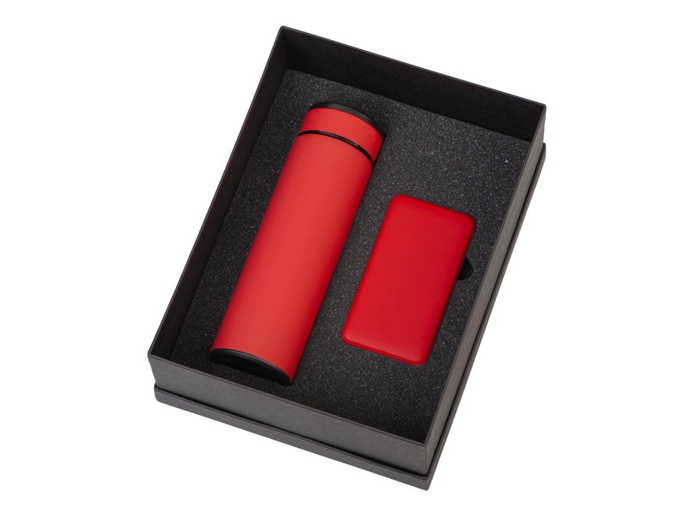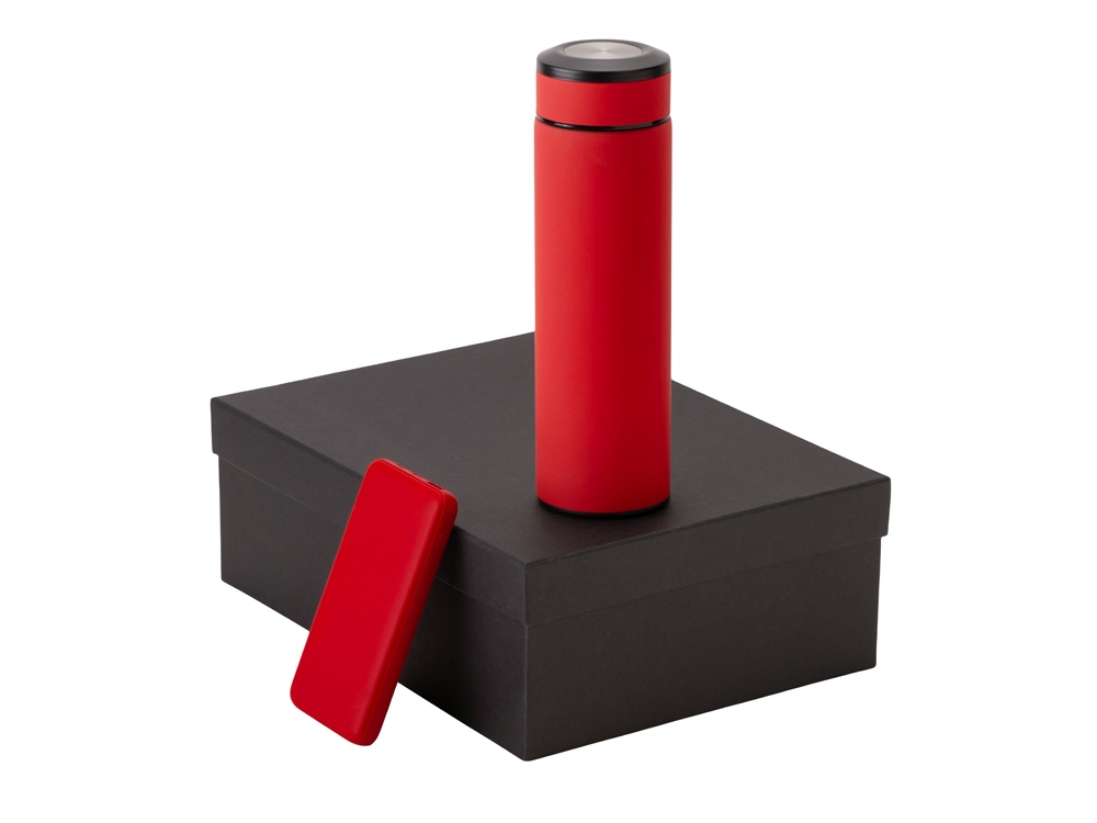 Подарочный набор с термосом и повербанком С2, красный купить оптом и в розницу с нанесением логотипа в Москве