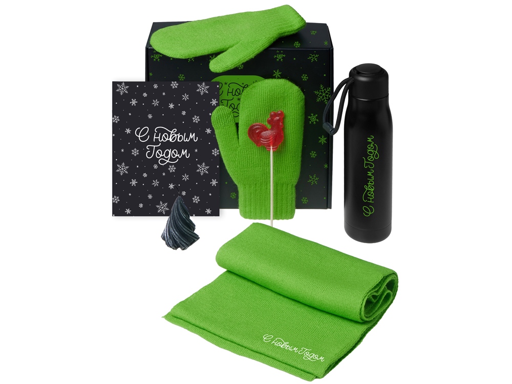 | Материал товара | варежки - 100% акрил; шарф - 100% акрил; термос - нержавеющая сталь; открытка - бумага; мешок - нетканый материал |