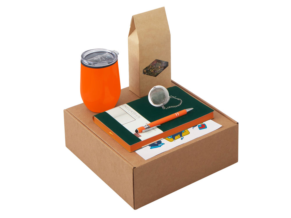 Набор Writea станет отличным подарком для сотрудников, клиентов и партнёров, подчеркнёт внимание к их комфорту и заботу о деталях. Он уместен как корпоративный подарок на праздники, юбилеи и деловые мероприятия, так и в качестве welcome-набора для новых коллег. Набор объединяет всё необходимое для комфортного рабочего дня: Ежедневник для идей, заметок и составления рабочих планов на день. В ежедневнике есть полезная справочная информация; Ручка, которая всегда под рукой; Практичная термокружка Pot отлично подойдет для использования как дома, так и в офисе, сохраняет тепло до 3-х часов; Ситечко для заваривания — незаменимая вещь для любителей чая. Оно помогает сохранить истинный вкус и аромат напитка, позволяя наслаждаться настоящим листовым чаем без лишних хлопот. Компактное и удобное, ситечко подходит для дома, работы, путешествий или отдыха на природе; Чай Малина с мятой - идеально подходит для вечернего расслабления после насыщенного дня; Набор стикеров — для ярких акцентов и персонализации вещей; Универсальный ложемент обеспечивает аккуратное размещение и надёжную фиксацию элементов, делая набор эффектным и презентабельным при вручении. Дополнительное преимущество — набор доступен в конструкторе наборов: компоненты можно заменить и собрать индивидуальный вариант под стиль компании или вкусы получателя.